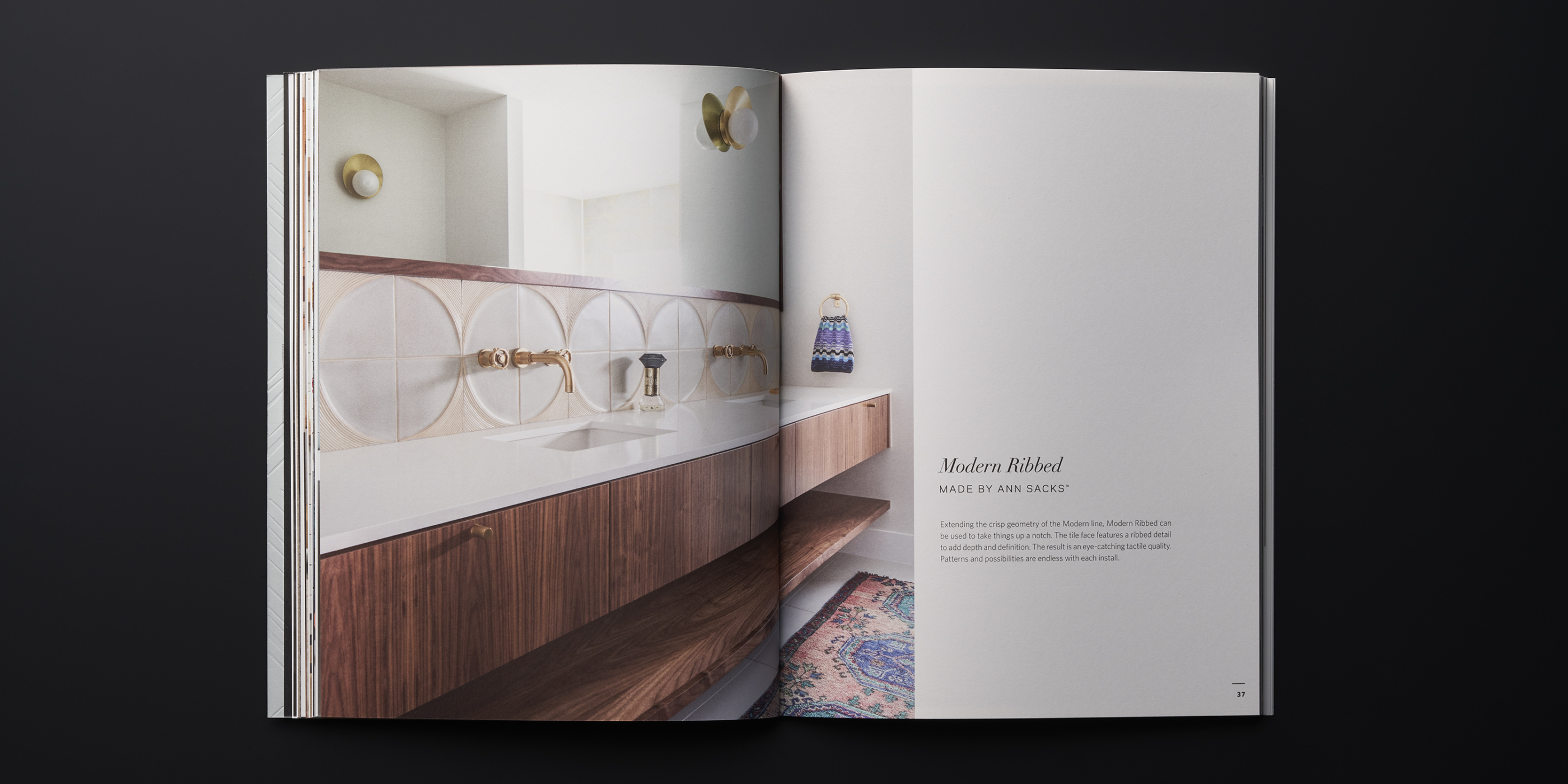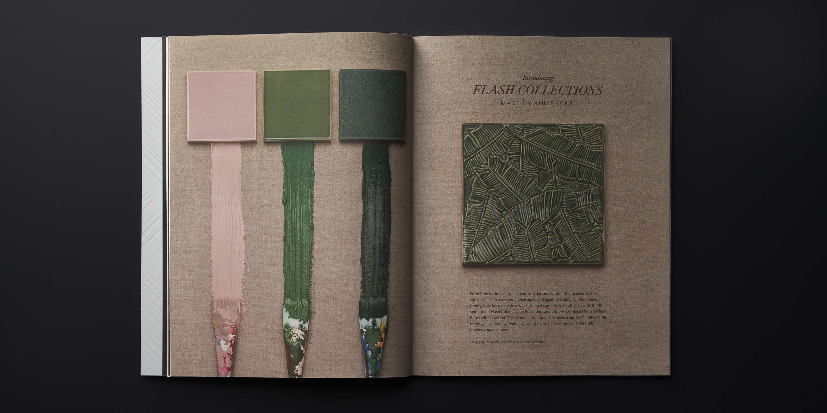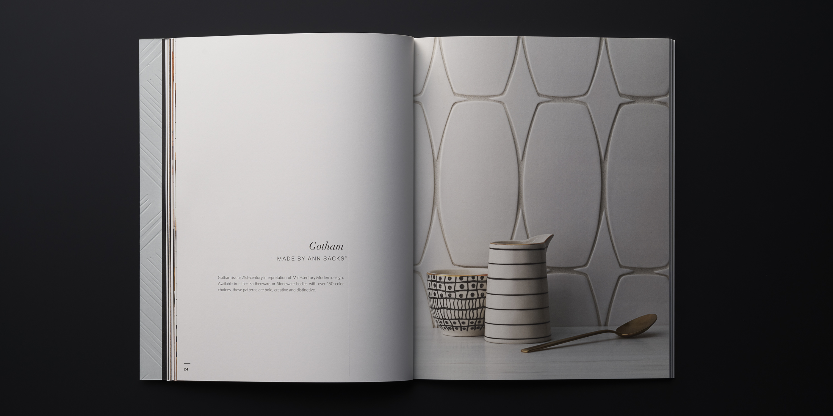 The third edition of the MADE by ANN SACKS brochure continues to reflect the premier quality of Ann Sacks Tile, with updated photography, layout, and content. Perhaps the biggest update is the gorgeous new Superfine Smooth paper stock from Mohawk. It’s the perfect vehicle to tell the handmade story of this artisanal line of ceramic art tile. It brings richness and depth to the product photography, feels lush in the hand, and takes beautifully to the foil and embossing we used on the cover. Mohawk Paper is so pleased with the result that they’re using the brochure as a promotional piece to showcase the qualities of the paper stock.