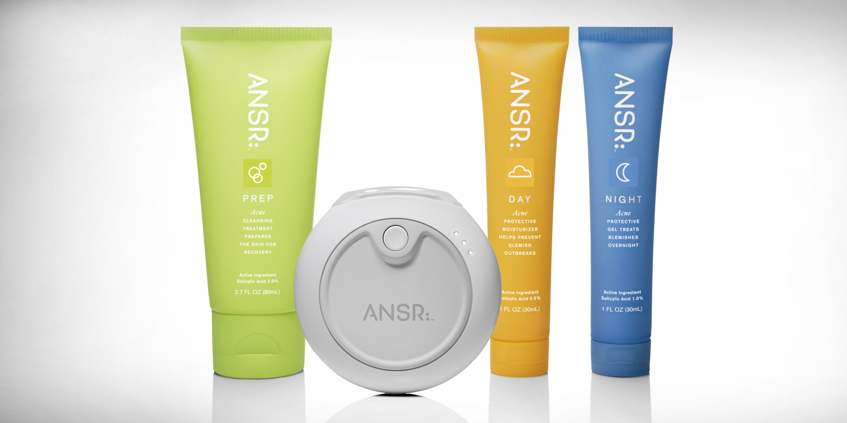 This startup company came to us to brand an effective new skincare technology that uses light therapy for anti-aging and acne, but they needed a name. For anyone who suffers from acne, there never seems to be a real answer, which led us to the name ANSR: Using identifiable symbols and clean colors, we communicated a positive, user-friendly feeling for the brand. The first phase of the project involved branding and packaging for direct mail. We devised a self-mailing package with every element considered. When the brand expanded into retail at department stores. We named their two products Beam and Halo, then created a new packaging system suited to the high-end cosmetics industry.