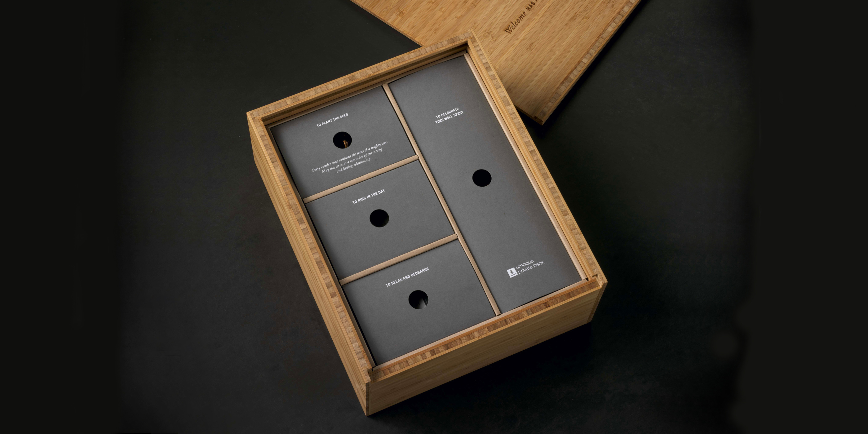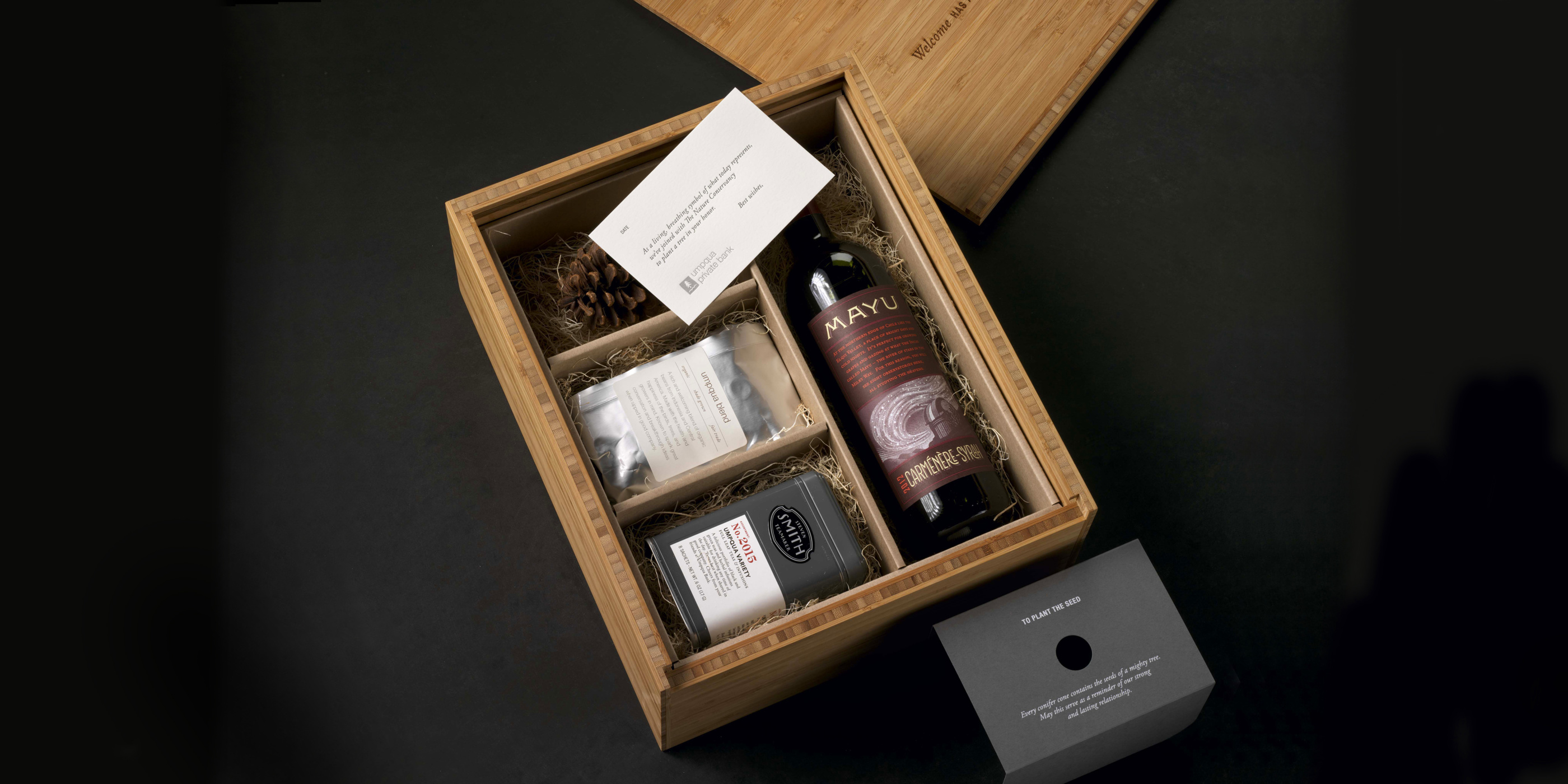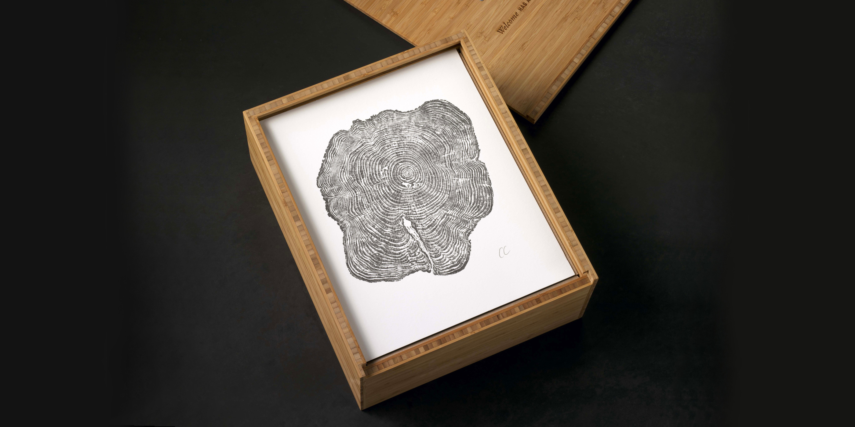 Umpqua Private Bank provides financial services for individuals with sizable assets. CO was asked to create a welcome ceremony marking the beginning of the relationship with a new client. Since Umpqua’s name is taken from a forest and a river, we chose to begin with the gesture of planting a tree as a symbol of growth. The rings of the tree represent the beginning of a shared history. We imbue this first day with gifts to partake at different times, from morning to evening, using fruits of local businesses. In the end, the client is left with an edition of a letterpress tree-ring print, a bamboo box and a new sense of place.